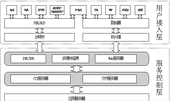 即多媒體客服中心的接入端,包括IVR流程、人工坐席等,它是用戶(hù)進(jìn)入多媒體客服中心客服系統(tǒng)的入口,它將直接面對(duì)用戶(hù)并收集各種信息。支持電話、傳真、電子郵件、WEB訪問(wèn)、WAP、PDA、IP電話、網(wǎng)絡(luò)電話、視頻電話等多種方式接入。