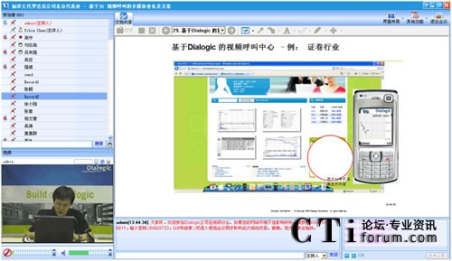 作為最早將3G語音視頻技術(shù)引入中國的世界級技術(shù)提供商,Dialogic在語音應(yīng)用和3G視頻一直具有領(lǐng)先競爭力。在此次“基于3G視頻呼叫的多媒體業(yè)務(wù)及方案”網(wǎng)絡(luò)研討會上,Dialogic中國區(qū)技術(shù)總監(jiān)陳益斌,以音視頻的在線直播方式,親身向與會觀眾講解Dialogic基于3G視頻呼叫的業(yè)務(wù),以及與3G數(shù)據(jù)業(yè)務(wù)的區(qū)別等前瞻3G視頻技術(shù)。