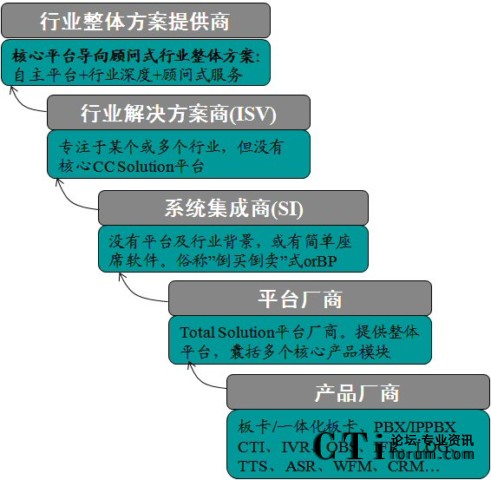 第一,建設(shè)需求的變化。不管客戶通過(guò)自建還是托管甚至租賃方式擁有自己的呼叫中心(哪種方式在哪個(gè)階段更適合企業(yè),本次不討論,有機(jī)會(huì)再分享),10年前包括現(xiàn)在建設(shè)非營(yíng)利性呼叫中心大多數(shù)企業(yè)是處在滿足有沒(méi)有的底層需求階段(物質(zhì)需求階段),那個(gè)階段建設(shè)呼叫中心目標(biāo)更多是解決有沒(méi)有問(wèn)題,并有一個(gè)明顯的時(shí)代烙印:最貴的就是最適合的,最貴的就是最好的,最貴的就是高枕無(wú)憂的……而那個(gè)時(shí)代國(guó)外廠商瘋狂“給力”國(guó)人,大發(fā)橫財(cái)。10年后的當(dāng)今大多數(shù)企業(yè)呼叫中心處在好不好的階段(精神需求階段)。有過(guò)一次甚至多次建置經(jīng)驗(yàn)的企業(yè),特別是國(guó)內(nèi)呼叫中心發(fā)展比較早及成熟的行業(yè),如:運(yùn)營(yíng)商、大金融(國(guó)有銀行、發(fā)展好的股份制商行與國(guó)有及商業(yè)保險(xiǎn)公司)、部分盈利型企業(yè)客服(呼入或呼出型電商、營(yíng)銷、外包客服等)大多數(shù)很理性,不再被沾沾自喜的國(guó)外廠商品牌、不再被廠商的某個(gè)技術(shù)、廠商多少國(guó)外成功案例等表象所迷惑。目前主流客戶需要的是有深度行業(yè)背景及積累,特別是行業(yè)理解力,并對(duì)客戶需求非常清晰的能提供顧問(wèn)式行業(yè)整體解決方案的合作伙伴,總而言之,現(xiàn)在客戶需要的合作伙伴就是:一要深度行業(yè)背景及積累、二具備顧問(wèn)式業(yè)務(wù)理解及交付能力、三能真正提供基于核心通信及業(yè)務(wù)平臺(tái)的顧問(wèn)式整體解決方案能力?傊,當(dāng)今及未來(lái)一段時(shí)間內(nèi)中國(guó)CTI、呼叫中心等客戶需求變化就是全產(chǎn)業(yè)鏈的深度需求。對(duì)相關(guān)廠商或解決方案提供商而言,誰(shuí)能掌控并行之有效的為各行業(yè)客戶提供CTI產(chǎn)業(yè)鏈更多價(jià)值環(huán)節(jié),誰(shuí)就是客戶真正需要也是想要的伙伴,也是未來(lái)CTI業(yè)相關(guān)廠商或解決方案提供商發(fā)展之道。