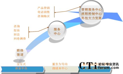 第二,業(yè)務(wù)應(yīng)用發(fā)展趨勢(shì)。早期呼叫中心大多數(shù)都是呼入型客戶服務(wù),處理基本的投訴、咨詢、回訪等常規(guī)業(yè)務(wù),可以說(shuō)更多的是一種擺設(shè),更像是形象工程。直接、間接效益都很難體現(xiàn),這就不難理解為什么在那個(gè)階段很多企業(yè)把呼叫中心建設(shè)理解為燒錢,不折不扣的成本中心。經(jīng)過(guò)這十多年的發(fā)展,包括技術(shù)的成熟等,呼叫中心可以說(shuō)業(yè)務(wù)應(yīng)用百花齊放,已經(jīng)成為營(yíng)銷服務(wù)中心、流程控制中心,而外包/租賃/托管等服務(wù)興起,特別是自動(dòng)或人工及呼入或呼出型營(yíng)銷服務(wù)的成熟是呼叫中心劃時(shí)代的變革,真正可以成為利潤(rùn)中心,并成為企業(yè)核心競(jìng)爭(zhēng)力之一。