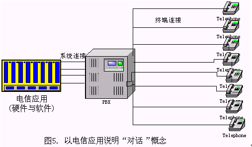 一般來說,一個基于電話語音識別的對話系統(tǒng)(如圖5所示),一般由識別服務(wù)器、應(yīng)用服務(wù)器、電話交換機、智能交換機設(shè)備、 IVR設(shè)備等設(shè)備組成,電話交換機與成千上萬個電話終端通過各種交換設(shè)備相連接,電信應(yīng)用軟件在這些硬件的支持下提供各種服務(wù),如:1860查詢服務(wù)等。此時,電信應(yīng)用開通的線數(shù)視系統(tǒng)的業(yè)務(wù)需求而定,一般總是大大小于終端連接的總數(shù)。系統(tǒng)連接數(shù)與終端連接數(shù)常常是1:1000或者1:10000的級別。"一路對話"是指物理上的一條線路,對于上述的電信應(yīng)用,電信開通的每一條線路都是一路對話。