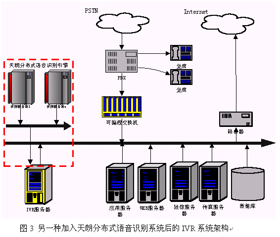 隨著語音識別的實用化進程加快,人們越來越認識到采用語音識別技術有利于極大的提高傳統(tǒng)按鍵方式IVR界面的友好性,提高服務的質量。另外,采用語音識別技術可以把以前不可能實現(xiàn)的事情變得可行。因此,目前IVR行業(yè)越來越多的人認識到語音識別技術的重要性,一些先行者已把語音識別技術集成到他們的系統(tǒng)中。那么,一個IVR廠商如何把天朗分布式語音識別系統(tǒng)集成到他們的IVR中呢?