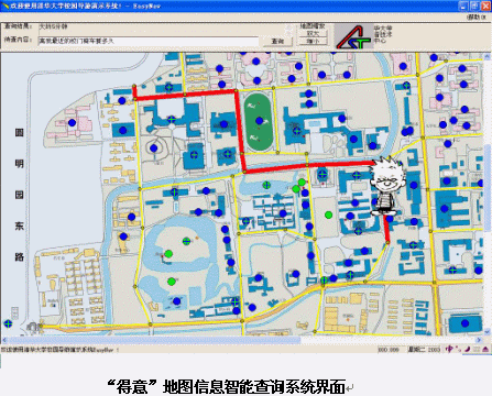 得意公司采用先進的自然語言理解技術(shù)和開發(fā)工具,獨立開發(fā)了具有完全自主知識產(chǎn)權(quán)的"得意"地圖信息智能查詢系統(tǒng)。此系統(tǒng)是基于某個地區(qū)的電子地圖,應(yīng)用中文智能自然語言理解技術(shù),為用戶提供多功能的信息查詢。用戶可在查詢欄中以自然語言的文本輸入與地理有關(guān)問題,系統(tǒng)就能智能地與用戶交互和進行引導,幫助用戶容易地查詢到包括位置、建筑、景點、路線、距離、所需時間等等不同的信息。系統(tǒng)的功能簡單、直觀而實用。