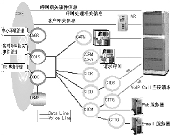 CICM CICM是Internet解決方案中的核心模塊,該模塊完成系統(tǒng)涉及到互聯(lián)網(wǎng)所有通話的控制,包括VoIP、E-mail、Chatting、畫像通話等。當(dāng)一個(gè)網(wǎng)上呼叫呼入時(shí),由CICR返回所分配的話務(wù)員相關(guān)信息(如IP),然后CICM將該信息送給客戶,使網(wǎng)絡(luò)聊天和Web到電話的通話得以同步。