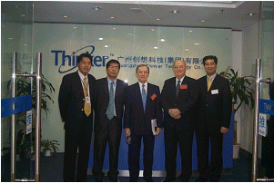 近日,美國香港商會代表團康詹新(James E Thompson)主席等一行20余人,在廣州市計委、廣州市政府領導、創(chuàng)想科技總經(jīng)理姚佑賢的陪同之下,參觀考察了國家火炬計劃基地骨干企業(yè)――廣州創(chuàng)想科技股份有限公司。此次美國香港商會代表團(美商會)來穗主要考察廣州高新技術產(chǎn)業(yè)發(fā)展狀況,尋求合作商機,推動粵港、中美的經(jīng)濟交流。 考察團一行參觀了創(chuàng)想科技的研發(fā)中心、設備演示廳、中試基地等,并在會議室就雙方如何進一步加強合作、共謀發(fā)展進行了深入的探討,對創(chuàng)想科技先進的技術與市場空間及投資條件表示了極大的興趣。
