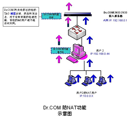 實(shí)現(xiàn)的原理類似于VLAN技術(shù),通過(guò)客戶端對(duì)合法用戶數(shù)據(jù)包動(dòng)態(tài)地增加一個(gè)識(shí)別標(biāo)簽,再由網(wǎng)關(guān)對(duì)這些數(shù)據(jù)包標(biāo)識(shí)去掉,轉(zhuǎn)發(fā)到上聯(lián)端口。而非法的用戶,由于數(shù)據(jù)包沒(méi)有合法的標(biāo)簽,被網(wǎng)關(guān)過(guò)濾掉。不僅能夠?qū)?nèi)網(wǎng)用戶進(jìn)行很好地防代理控制,又不影響局域網(wǎng)和城域網(wǎng)的內(nèi)網(wǎng)服務(wù)器和外部Internet服務(wù)器的正常通信。