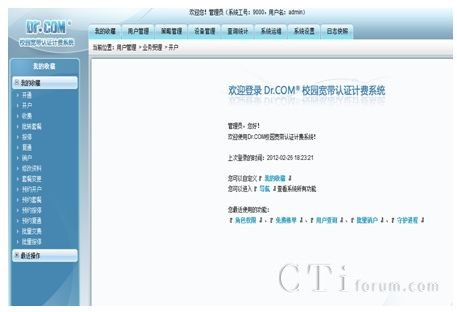 在認(rèn)證計(jì)費(fèi)系統(tǒng)軟件部署中,城市熱點(diǎn)采用了全新的B/S版本,系統(tǒng)采用Oracle數(shù)據(jù)平臺,提供具有高效穩(wěn)定的數(shù)據(jù)后臺架構(gòu)。該版本具有部署快捷,易于維護(hù)的優(yōu)勢,方便了后臺維護(hù)人員在系統(tǒng)的管理操作過程。
