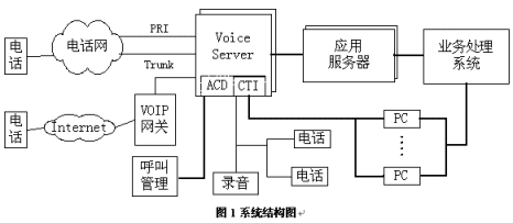 通過業(yè)務(wù)處理系統(tǒng),一方面為ACD系統(tǒng)提供基于產(chǎn)品信息、客戶信息的路由分配方式,為客戶提供更為迅速,更為個性化的服務(wù);另一方面為IVR、座席等系統(tǒng)提供數(shù)據(jù)庫訪問服務(wù)、文件服務(wù)。同時應(yīng)用服務(wù)器還提供認證加密、系統(tǒng)管理配置、網(wǎng)關(guān)等功能。