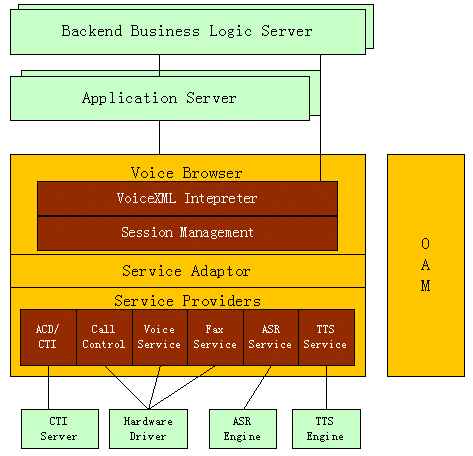 o 功能豐富:支持VoiceXML 2.0的全部現(xiàn)有功能,支持主流PBX、CTI中間件、語音呼入\出、傳真等功能,支持語音識別(ASR)和語音合成技術(TTS)。