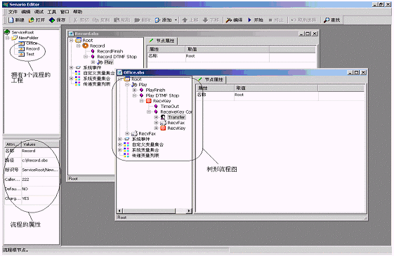 ·系統(tǒng)提供流程調(diào)試功能,調(diào)試器提供事件模擬器用來(lái)模擬"電話按鍵"以及其他與硬件相關(guān)的"事件"?梢栽跊](méi)有語(yǔ)音板卡條件下實(shí)現(xiàn)摘機(jī)、語(yǔ)音播放、傳真收發(fā)、座席轉(zhuǎn)接等操作;