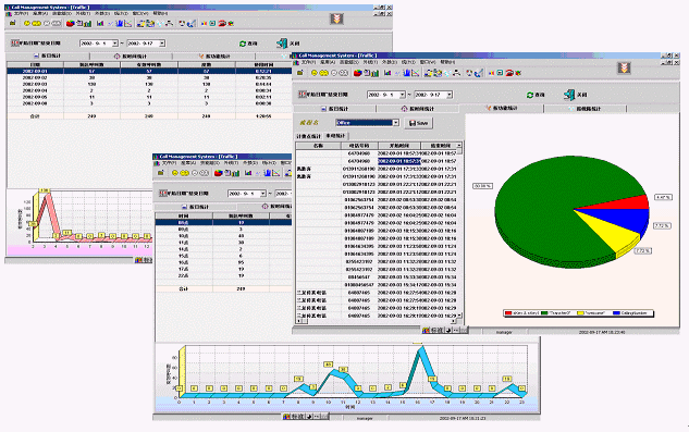 ·按照時(shí)間對(duì)來(lái)電以及Traffic進(jìn)行統(tǒng)計(jì),并且從立體折線圖中看到所選的日期內(nèi)各個(gè)時(shí)間段的呼叫分布數(shù);