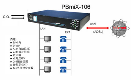 在21世紀(jì)的今日,隨著網(wǎng)絡(luò)應(yīng)用的普及,無論是個人或企業(yè)對于交換機(jī)的觀念若仍拘泥于傳統(tǒng)的思維,將是落伍的。免費(fèi)網(wǎng)絡(luò)電話、分散式系統(tǒng),將是傳統(tǒng)交換機(jī) 在增加語音信箱/自動總機(jī)功能之后,系統(tǒng)機(jī)制的重大變革。本公司推出的PBmaX/PBmiX系列IP-PBX,不但將上述所有功能整合于一體,進(jìn)一步可內(nèi)建公司VPN、Web服務(wù)器、GateKeeper等功能,呈現(xiàn)出數(shù)字交換機(jī)的全新風(fēng)貌,并將新的電話使用觀念帶進(jìn)企業(yè)、SOHO辦公室與家庭內(nèi)。