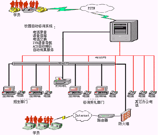 學(xué)員利用電話方式,可方便快捷的查詢教育培訓(xùn)機(jī)構(gòu)的介紹、開(kāi)設(shè)課程情況介紹、教學(xué)地點(diǎn)情況介紹等信息。系統(tǒng)還可預(yù)置相關(guān)介紹內(nèi)容的傳真件,供學(xué)員按需自助索取。