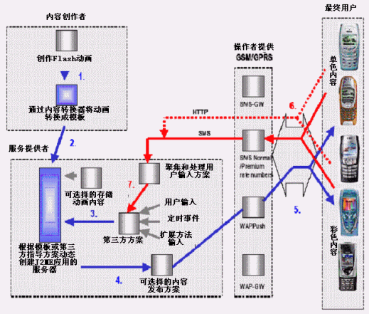通過目前的2/2.5G網(wǎng)絡傳輸,運行Flash動畫轉(zhuǎn)換成的應用程序不需要在手機上安裝特別的播放器軟件,只需要支持Java技術。 該方案可以用現(xiàn)有的網(wǎng)絡和J2ME設備,使用戶提前進入多彩的無線世界,給用戶一個新的選擇。