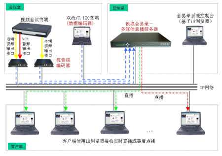 同時系統(tǒng)具備直播、點播功能,用戶使用IE瀏覽器即可接收會議的實時直播或進行事后點播,通過直播或點播可同步觀看到會議中視音頻和數(shù)據(jù)內(nèi)容,觀看會議的效果如同身處會場之后。會易錄極大地擴展了視頻系統(tǒng)的功能和應(yīng)用,適合任何已有或擬建視頻會議系統(tǒng)的用戶使用。
