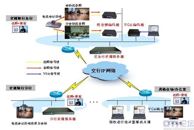 交通銀行做為重要的大型國有商業(yè)銀行之一,在國家金融事業(yè)發(fā)展、以及保障和促進國家經(jīng)濟發(fā)展方面占有重要的地位。交通銀行極其重視信息化建設(shè),為提高工作效率、改善服務方式、提高競爭力,及抗擊目前席卷全球的金融海嘯,交通銀行建設(shè)了覆蓋各級機構(gòu)的電視電話會議系統(tǒng),在該系統(tǒng)中采用了銳取多媒體錄播系統(tǒng)。
