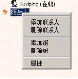 這時(shí)用戶就可以選擇相應(yīng)的功能對該好友進(jìn)行操作,灰色的選項(xiàng)是不可用的功能,如果想使該項(xiàng)功能可用,可以在該用戶的屬性中編輯,添入好友的該項(xiàng)信息。