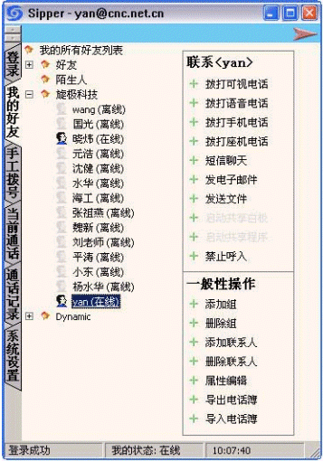 該軟件可以實(shí)現(xiàn)網(wǎng)上可視交談、電話會(huì)議、短信傳輸、文件傳輸?shù)榷喾N功能。