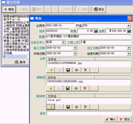 主要登記產(chǎn)品信息、客戶信息、服務合同、售后服務卡,接受客戶的投訴或請求,進行派工和派工的跟蹤。