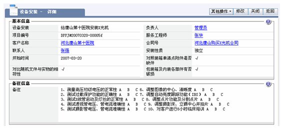 對(duì)于需要安裝的項(xiàng)目記錄,包括項(xiàng)目的安裝團(tuán)隊(duì)、日程安排、安裝費(fèi)用、安裝文件、安裝階段等的管理
