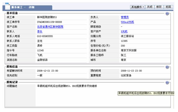 醫(yī)療設(shè)備的維修以現(xiàn)場(chǎng)服務(wù)為主,在接到客戶服務(wù)請(qǐng)求到派工的流程,依靠紙張遠(yuǎn)遠(yuǎn)達(dá)不到高效的要求,維修情況的記錄已僅僅是事后的文字記錄,通常需要層層上報(bào),更不具備匯總和統(tǒng)計(jì)分析的功能,作為領(lǐng)導(dǎo)不能適時(shí)監(jiān)控和管理在外的維修服務(wù)工程師。