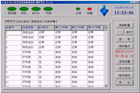 狀態(tài)監(jiān)視:會議秘書可以監(jiān)視每個會議成員的當前狀態(tài)。如:空閑、呼叫遇忙、正在振鈴、取機應(yīng)答、呼入等待、正在通話等狀態(tài)。各種狀態(tài)以不同的顏色顯示在會議控制臺上。