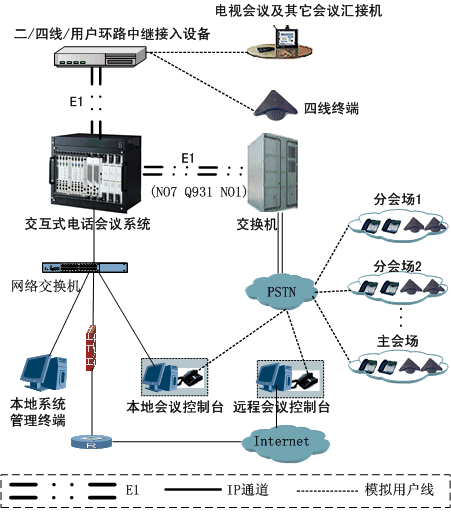 會議控制:通過局域網(wǎng)軟件終端控制,或通過話機按鍵控制