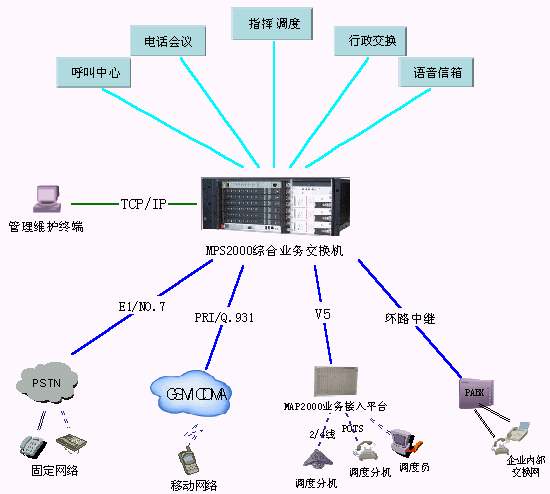 同時(shí)MPS2000綜合業(yè)務(wù)交換機(jī)能支持NO.7、NO.1、Q.931等在網(wǎng)運(yùn)行的所有信令協(xié)議。