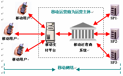 ·平臺運(yùn)營商起到"插轉(zhuǎn)器"的作用,將銀行、SP、用戶等各利益群體之間錯(cuò)綜復(fù)雜的關(guān)系簡單化,將多對多的關(guān)系變?yōu)槎鄬σ坏年P(guān)系,從而大大提高了商務(wù)運(yùn)作的效率;