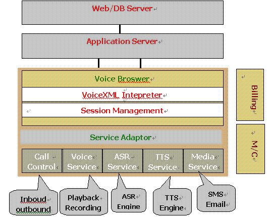 o 接口模塊(Service)用于接口控制,如電話控制、ASR/TTS引擎、媒體接入等。