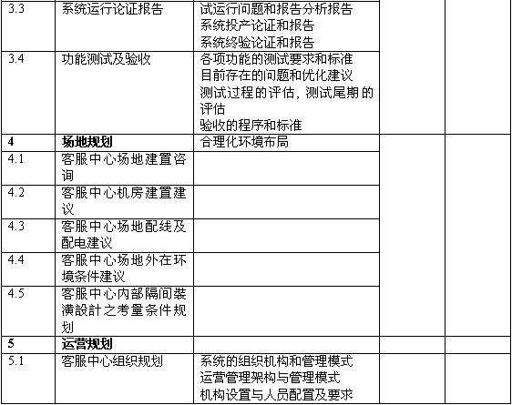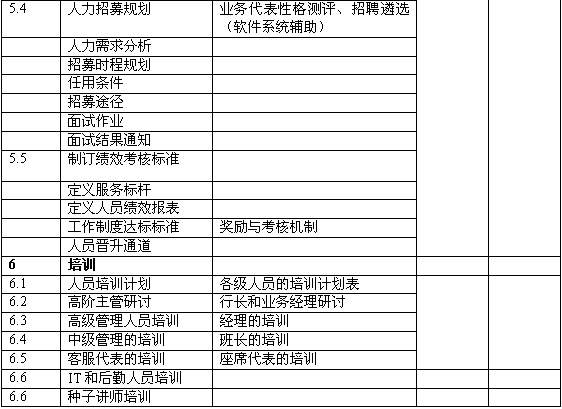 6.提出了未來客戶滿意度、分流柜面比率、產(chǎn)品促銷量等方面的量化比率;針對客服中心的主要業(yè)務提供量化的目標,并提出達成目標的前提條件;對未來人員和系統(tǒng)規(guī)模提供量化預估。