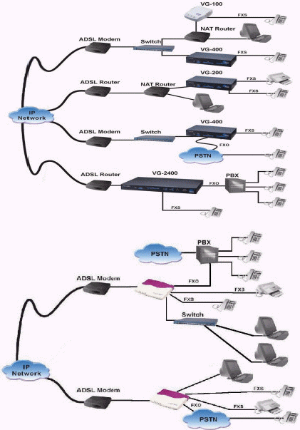 VG400語(yǔ)音網(wǎng)關(guān)產(chǎn)品的企業(yè)網(wǎng)IP電話(huà)編號(hào)與呼叫的優(yōu)越性在于保護(hù)了現(xiàn)有傳統(tǒng)設(shè)備如電話(huà)機(jī)、傳真機(jī)、PBX、KTS(鍵控電話(huà)系統(tǒng))等的投資,建立了這些傳統(tǒng)設(shè)備與IP網(wǎng)之間的橋梁。
