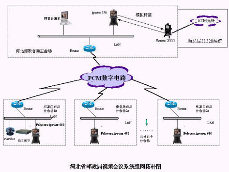 河北郵政會(huì)議電視系統(tǒng)是為滿足郵政自身業(yè)務(wù)的需要并著眼未來(lái)的發(fā)展而建設(shè)的系統(tǒng)。此系統(tǒng)以河北省郵政局為主會(huì)場(chǎng),各市郵政局為分會(huì)場(chǎng)共使用中小型會(huì)議室終端11臺(tái)、中型會(huì)議室終端1臺(tái)、MCU 1臺(tái)及電子白板1個(gè)。直真視通科技有限公司根據(jù)此系統(tǒng)的具體情況和需求,選用美國(guó)Polycom的產(chǎn)品。為河北省郵政局主會(huì)場(chǎng)配置中型會(huì)議室終端和PC機(jī)(用于MCU遠(yuǎn)程管理)各一臺(tái),同時(shí)考慮需要與原國(guó)家局會(huì)議電視系統(tǒng)對(duì)接,配置電子白板用于遠(yuǎn)程培訓(xùn);省郵政綜合網(wǎng)中心為省內(nèi)郵政綜合網(wǎng)的中心節(jié)點(diǎn),MCU放置在此中心,由省局主會(huì)場(chǎng)通過(guò)PC機(jī)實(shí)現(xiàn)遠(yuǎn)程管理;各市局分會(huì)議室配置中小型會(huì)議終端一臺(tái)。