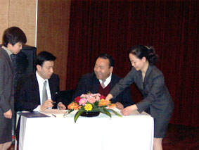 在簽約儀式上,上海自來水市北有限公司董事長王希高,中國信息化推進聯(lián)盟客戶關(guān)系管理專業(yè)委員會常務(wù)副主任郭晨東,分別代表雙方正式簽署了認(rèn)證項目協(xié)議。