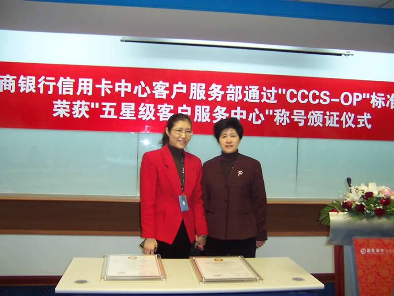 這天的上午10點30分,在招商銀行信用卡中心上海總部舉行了簡約而隆重的頒證儀式,信用卡中心常務(wù)副總經(jīng)理梁瑤蘭從信息產(chǎn)業(yè)部電子信息中心副主任、中國信息化推進(jìn)聯(lián)盟秘書長劉獻(xiàn)軍手中接過證書,標(biāo)志著國內(nèi)第一家五星級客戶服務(wù)中心誕生了!