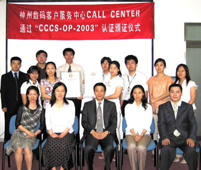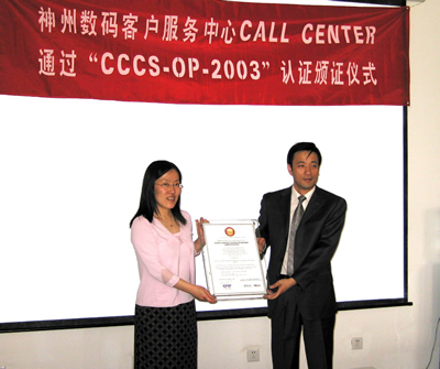 2005年6月2日,神州數(shù)碼呼叫中心通過了《全國呼叫中心運營績效標準》(CCCS-OP-2003)認證,并獲得由中國信息化推進聯(lián)盟客戶關(guān)系管理專業(yè)委員會頒發(fā)的認證證書(四星級客戶服務(wù)中心),成為國內(nèi)IT行業(yè)首家通過此認證的呼叫中心。