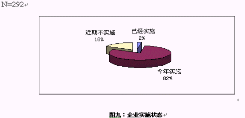 對大多數企業(yè)來說,對CRM還處于關注階段,只有7家企業(yè)表示已經開始實施,在電話訪問中,了解到這7家企業(yè)的實施的主要是在渠道管理和客戶呼叫中心等方面,但表示今年會開始實施的卻超過8成。