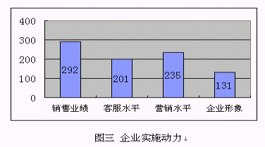 3) 提升企業(yè)形象:很多受訪企業(yè)特別是服務業(yè),已經建立客戶忠誠度放在了很重要的位置,但比較其它幾個直接動因,比例偏低,這也說明"以客戶為中心"的觀念還沒有"以利潤為中心"強烈。