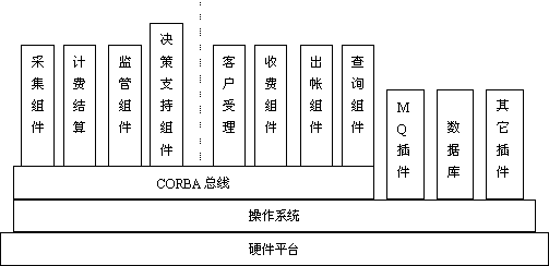 • 新的軟件模塊即插即用。隨著電信市場(chǎng)的不斷變化,許多新的功能模塊需要隨時(shí)增加,已有的模塊需要頻繁改動(dòng),甚至已有的處理流程也會(huì)改變,這樣就要求系統(tǒng)有極好的靈活性,各系統(tǒng)模塊相對(duì)獨(dú)立,可獨(dú)立于硬件而在CORBA總線(xiàn)上自由遷移。