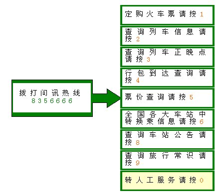 鄭州火車站的自動電話問訊熱線系統(tǒng)建設(shè)“8356666”是一項為廣大旅客提供實實在在便利的舉措。在該電話問訊系統(tǒng)中,應(yīng)用科大訊飛語音合成技術(shù),將實時查詢的列車、票務(wù)、行包等信息轉(zhuǎn)換成語音,通過電話提供用戶,實現(xiàn)了人工受理咨詢服務(wù)與24小時自動服務(wù)相結(jié)合的新型服務(wù)方式。該電話問訊系統(tǒng)投入使用以來,受到旅客們的廣泛好評。