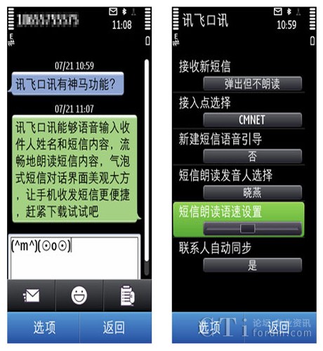 CTI論壇(ctiforum)8月2日消息(記者 張潔):不論是開車還是玩游戲,總是難以騰出手來操控手機,你是否想過如果可以通過耳朵就能聽到短信內(nèi)容,然后說說話就能回復短信?近日,科大訊飛與騰訊應用中心聯(lián)合首發(fā)了訊飛口訊(Symbian)新版v1.0.1100,該產(chǎn)品支持語音發(fā)送短信及新短信自動語音朗讀,大大增添了Symbian手機的實用性和趣味性,滿足了廣大用戶解放手指、隨時隨地發(fā)短信的需求。