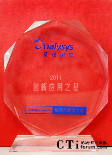 CTI論壇(ctiforum)8月12日消息(記者 張潔):日前,訊飛語音輸入法在易觀國際移動互聯(lián)網(wǎng)博覽大會上脫穎而出,獲得“2011第四屆易觀EnfoNet Award移動互聯(lián)網(wǎng)創(chuàng)新應用--手機輸入法之星”大獎,充分體現(xiàn)了訊飛語音輸入法的技術領先性、應用創(chuàng)新性及廣泛的社會認可度。