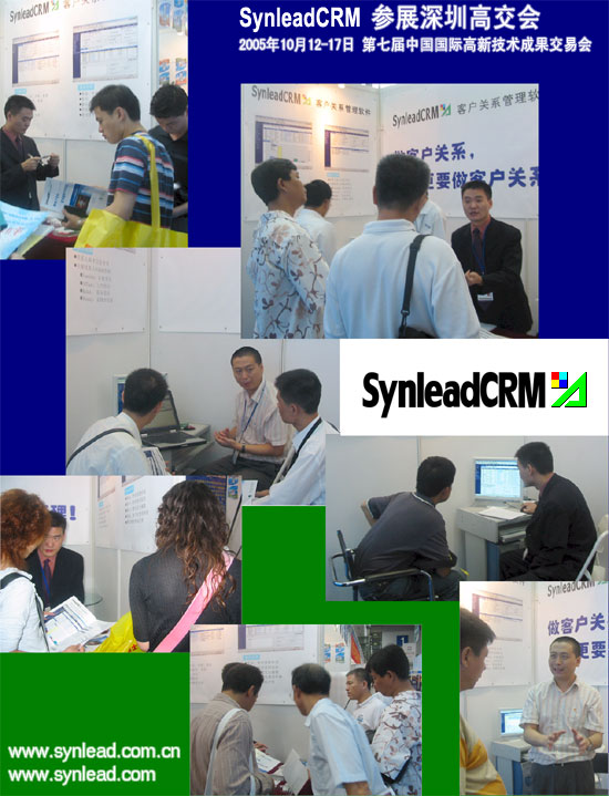 2005年10月12-17日,深圳,SynleadCRM客戶關(guān)系管理系統(tǒng)參展第七屆中國(guó)國(guó)際高新技術(shù)成果交易會(huì)(簡(jiǎn)稱(chēng)高交會(huì))。