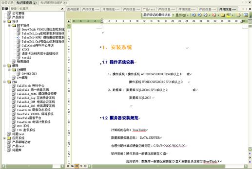 業(yè)務(wù)知識(shí)庫(kù)系統(tǒng)包括大量的信息,它可以幫助坐席人員精確、及時(shí)地得到相關(guān)知識(shí)的詳細(xì)信息。坐席人員可以利用業(yè)務(wù)知識(shí)庫(kù)系統(tǒng)提供的多種查詢手段,進(jìn)行各種信息的查詢。管理人員還可以通過(guò)知識(shí)庫(kù)訪問(wèn)量統(tǒng)計(jì)來(lái)了解座席員訪問(wèn)知識(shí)庫(kù)的情況,并且可以通過(guò)知識(shí)庫(kù)資料維護(hù)來(lái)靈活定制知識(shí)庫(kù)的內(nèi)容。