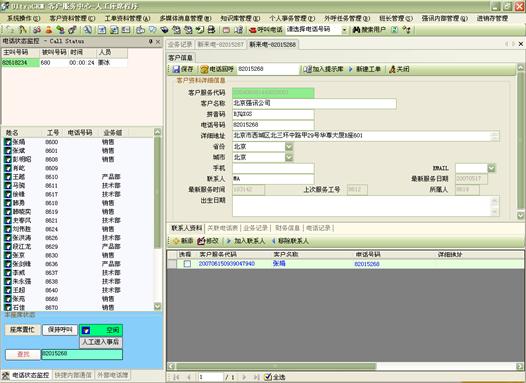 系統(tǒng)與CTI服務(wù)器配合,輕松實(shí)現(xiàn)諸如:最佳路由選擇、自動(dòng)彈出客戶信息、座席通過(guò)屏幕控制電話接聽(tīng),轉(zhuǎn)接,會(huì)議,監(jiān)聽(tīng)等。同時(shí),系統(tǒng)支持由座席安排定時(shí)電話自動(dòng)外撥、批量電話外撥、批量傳真發(fā)送、坐席通話錄音、坐席通話監(jiān)聽(tīng)等服務(wù)。
