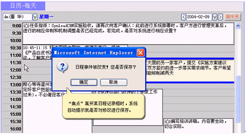 ·一旦主題、開始時(shí)間或結(jié)束時(shí)間有變化,在您處理其它工作之前,系統(tǒng)將自動(dòng)提示您是否保存剛才的修改。