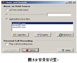 管理員可以設(shè)定各種狀態(tài)下的背景音樂,如:保持通話、等待會(huì)議等。用戶可以根據(jù)來電的不同(內(nèi)部分機(jī)、外部)選擇不同的來電振鈴音,管理員可以為用戶導(dǎo)入更多的鈴音選擇。