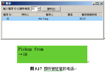 接通后,如果通話內(nèi)容很緊急而又不方便在會(huì)議室進(jìn)行溝通,此時(shí),用戶可以按下話機(jī)上的“Park”按鈕,此時(shí)對(duì)方通話被導(dǎo)入到一段音樂(背景音中設(shè)定的音樂)。記住屏幕上提示的駐留號(hào)碼,即可掛機(jī):