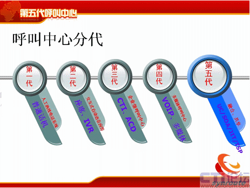 第五代呼叫中心的定義比較簡單,第五代呼叫中心是基于UC的,基于SOA和實時服務總線技術(shù)的,具備JIT管理思想和作為全業(yè)務支撐平臺TSP的呼叫中心系統(tǒng)。