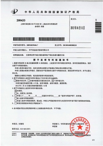 CTI論壇(ctiforum)4月24日消息(記者 歐陽): 近日,從中國國家知識產(chǎn)權局傳來好消息,華平股份又一次獲得發(fā)明新專利,該專利的名稱為:互聯(lián)網(wǎng)應用中減少服務器和客戶端業(yè)務通訊量的方法。截止到2012年4月20日,華平股份共申請了發(fā)明專利46項,獲得授權的發(fā)明專利20項。